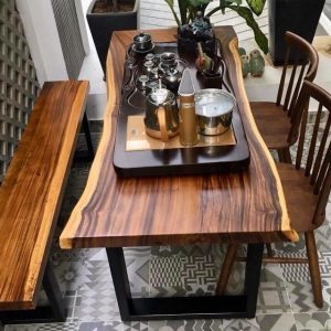 Bàn ăn gỗ tự nhiên me tây nguyên tấm có giá tuỳ theo từng mặt. Nói chung giá phụ thuộc vào 2 biến số chính đó là: