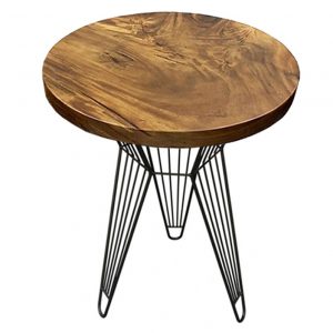 Bàn cà phê gỗ me tây tròn 60cm dày 5cm chân sắt