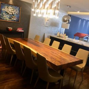Bàn ăn gỗ tự nhiên me tây nguyên tấm có giá tuỳ theo từng mặt, nói chung giá phụ thuộc vào 2 biến số chính đó là: